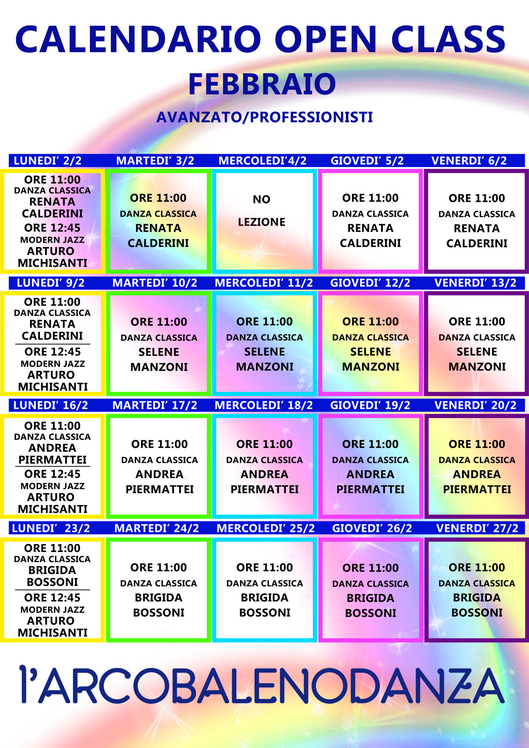 Per partecipare a queste lezioni è necessario prenotarsi scrivendo a segreteria@arcobalenodanza.it.